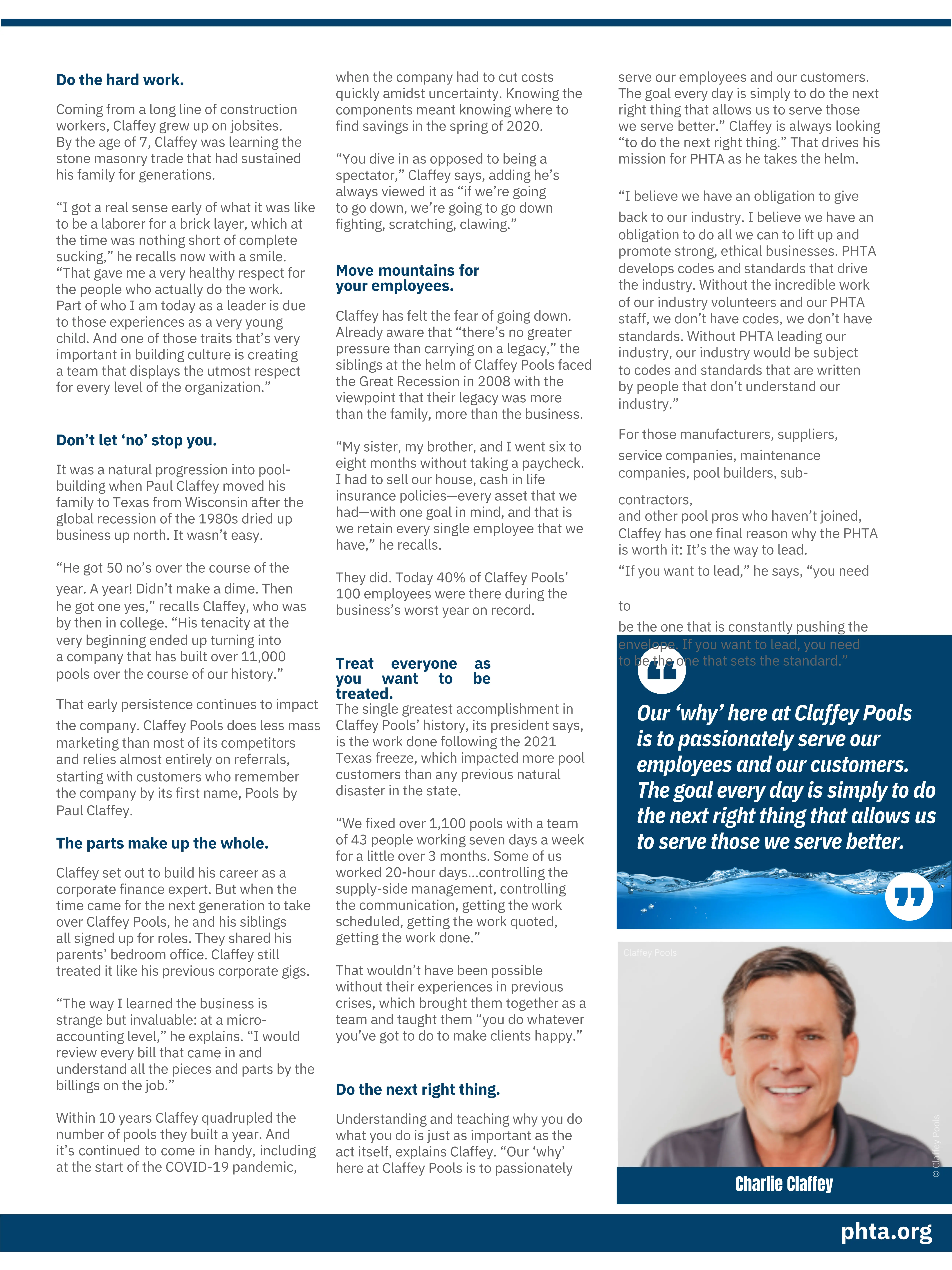 PHTA Deep Dives Member Spotlight Article: Charlie Claffey - Claffey Pools