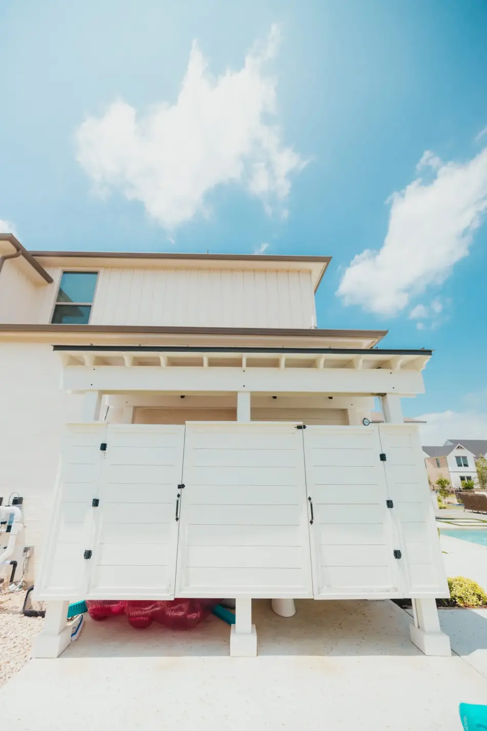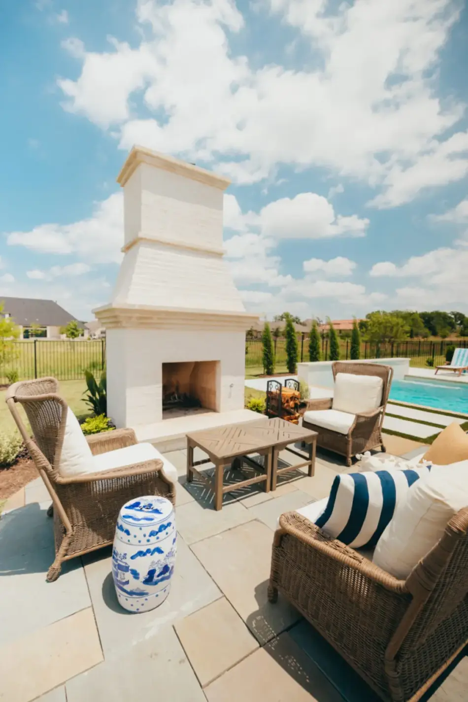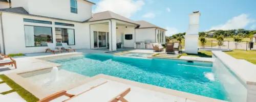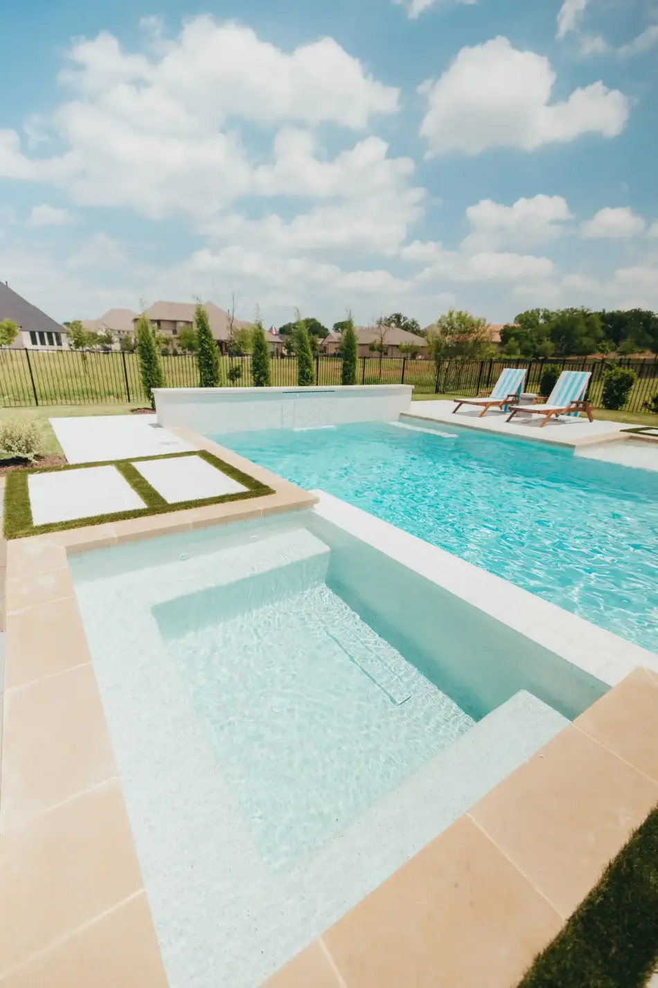 - Features: Bubblers • Buff Lueders • Fire Place • In-ground Trampoline • Outdoor Bathroom • Outdoor Kitchen • Raised Beam • Sheer Descent • White Diamonds PebbleSheen •