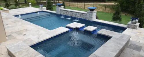 - Features: Bubblers • Clearwater Pebble Brilliance • Fire Bowl • Milsap Chopped Stone • Raised Beam • Raised Spa • Sheer Descent • Silver Travertine • Tanning Ledge •