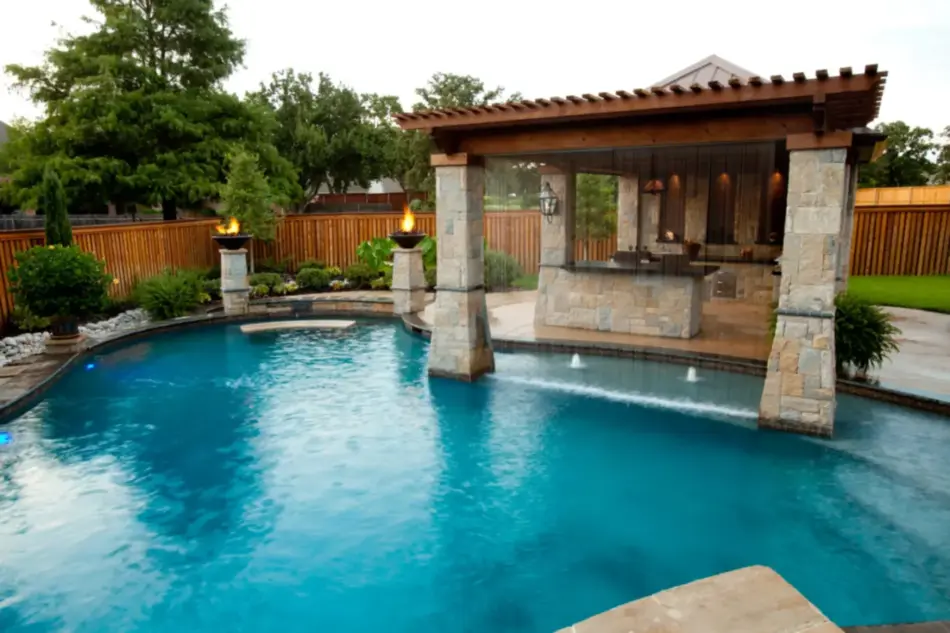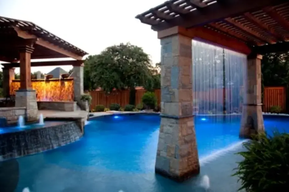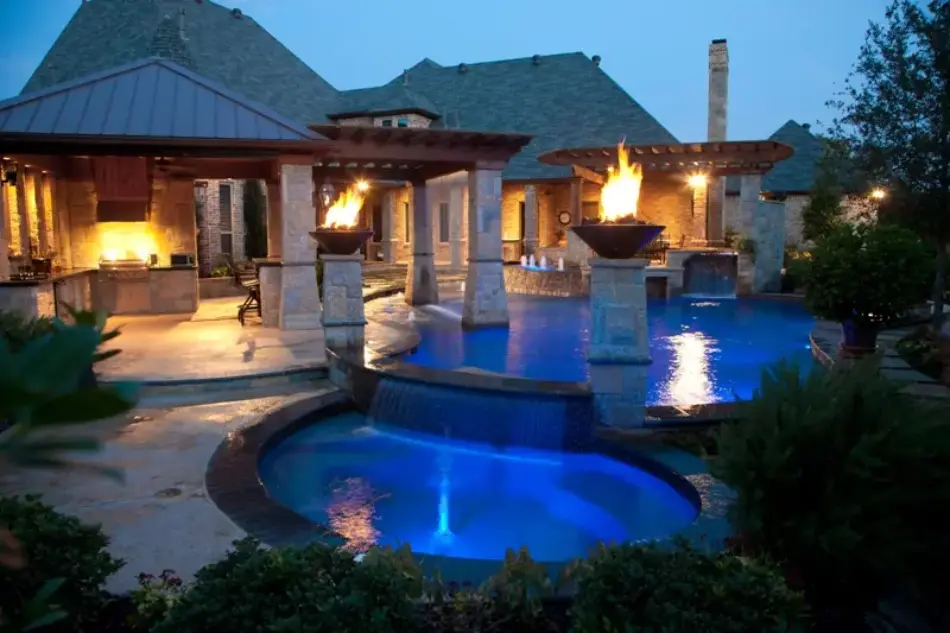 - Features: Bubblers • Grotto • In-Pool Table • Jump Rock • Spa • Tanning Ledge • Water Bowl • Water Wall •