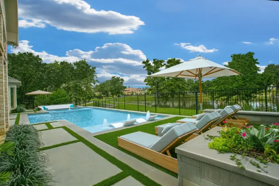 - Features: Bubblers • Fire Pit • Smoke Lueders • Tanning Ledge • Turf •