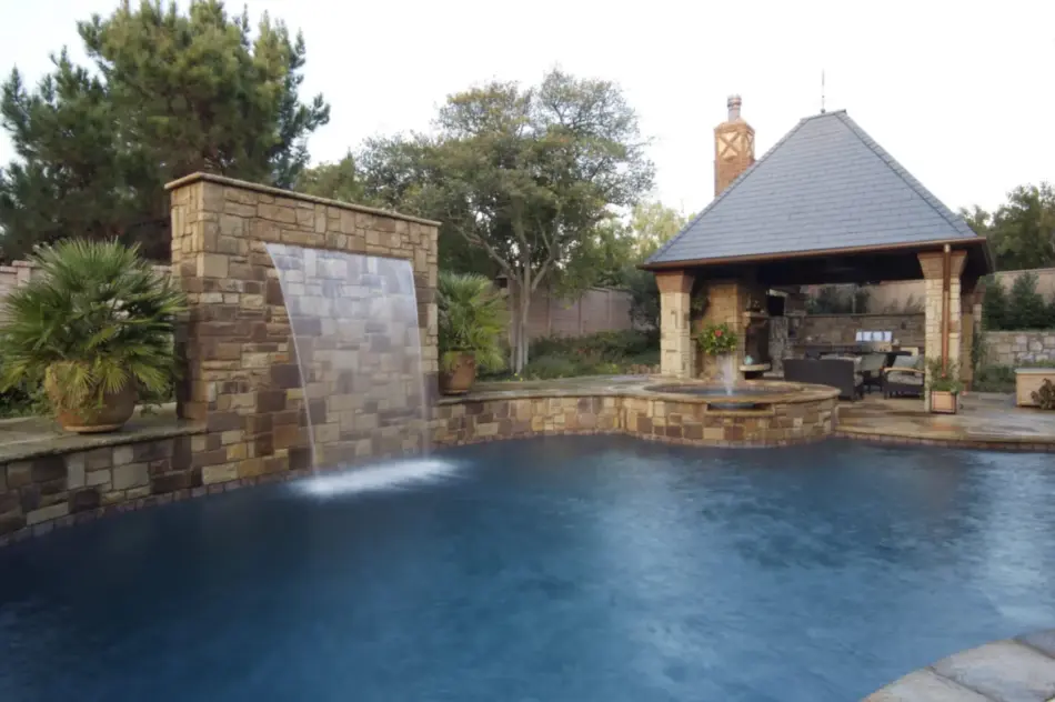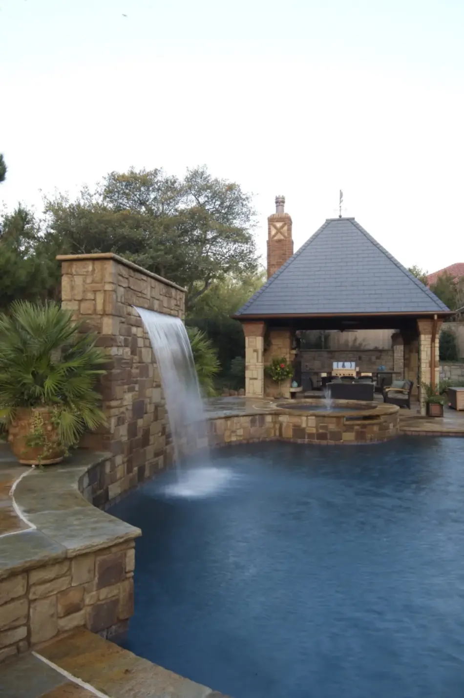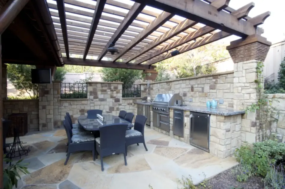 • Features: Attached Arbor Fireplace Milsap Stone Ocean Blue PebbleSheen Oklahoma Flagstone Outdoor Kitchen