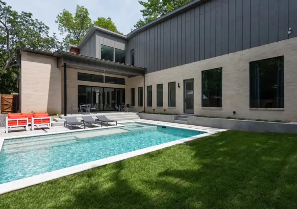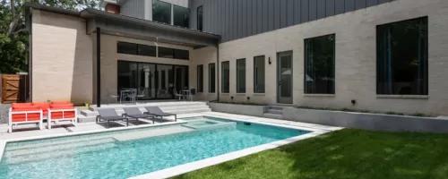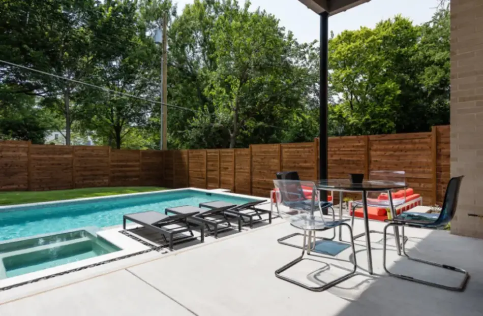 - Features: Broomed Concrete • Claffey White PebbleSheen • Flush Spa • White Precast Concrete •
