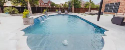 Turned a pool that was separated by grass due to drainage issues to a pool with total use of the yard. Added Firepit for sitting around with artificial turf block outs. Added Equinox arbor for shade in the new kitchen area.