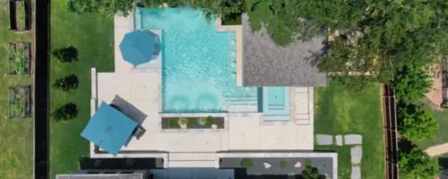 - Features: Cabana • Fire/Water Bowl • Flush Spa • Granbury Blue Streak Stone • In-Pool Bar Stools • Outdoor Kitchen • Silver Travertine • Tanning Ledge • White Diamonds PebbleSheen •