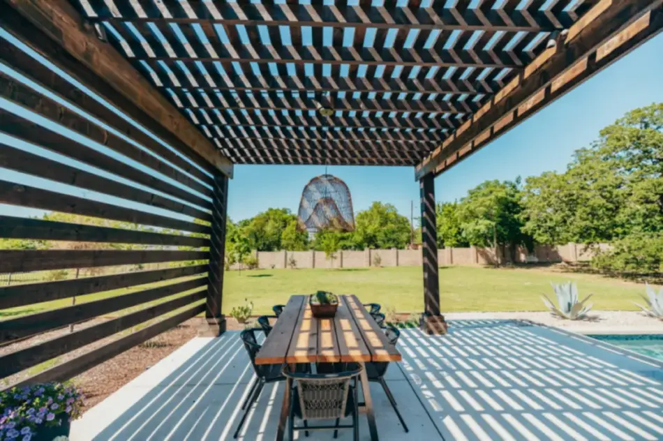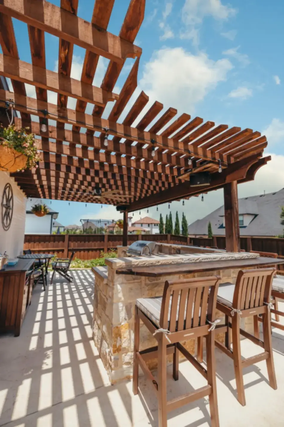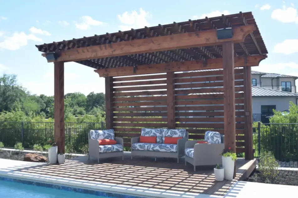 Whether you’d like a lattice-effect on your arbor, where dappled sunlight can shine through whilst you relax on the sofa or eat dinner with guests, or you’d like an opaque roof that keeps the sun out from above but allows plentiful light from the sides, we’ve got you covered. Using only the most beautiful wood that perfectly complements the colors and style of the surrounding structures, we’ll build your custom arbor to the highest standard.